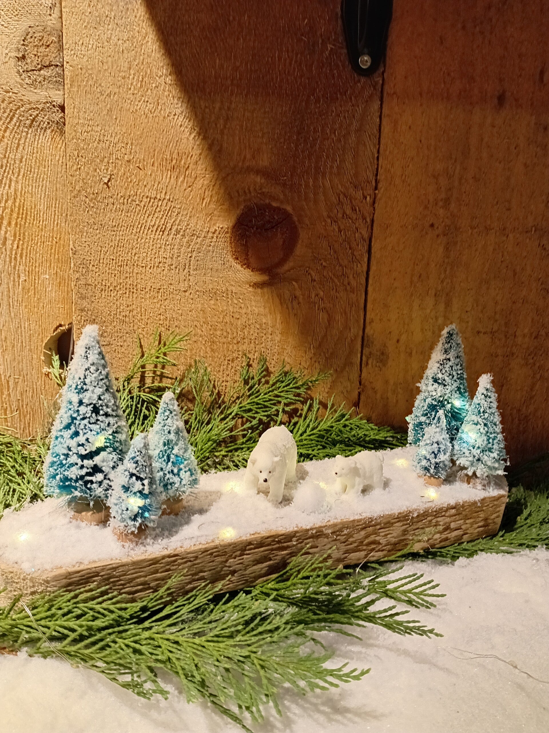 Cette superbe plaquette du monde ours polaire fera une jolie décoration de table pour les fêtes .....sa guirlande led integré donnera une ambiance chaleureuse !